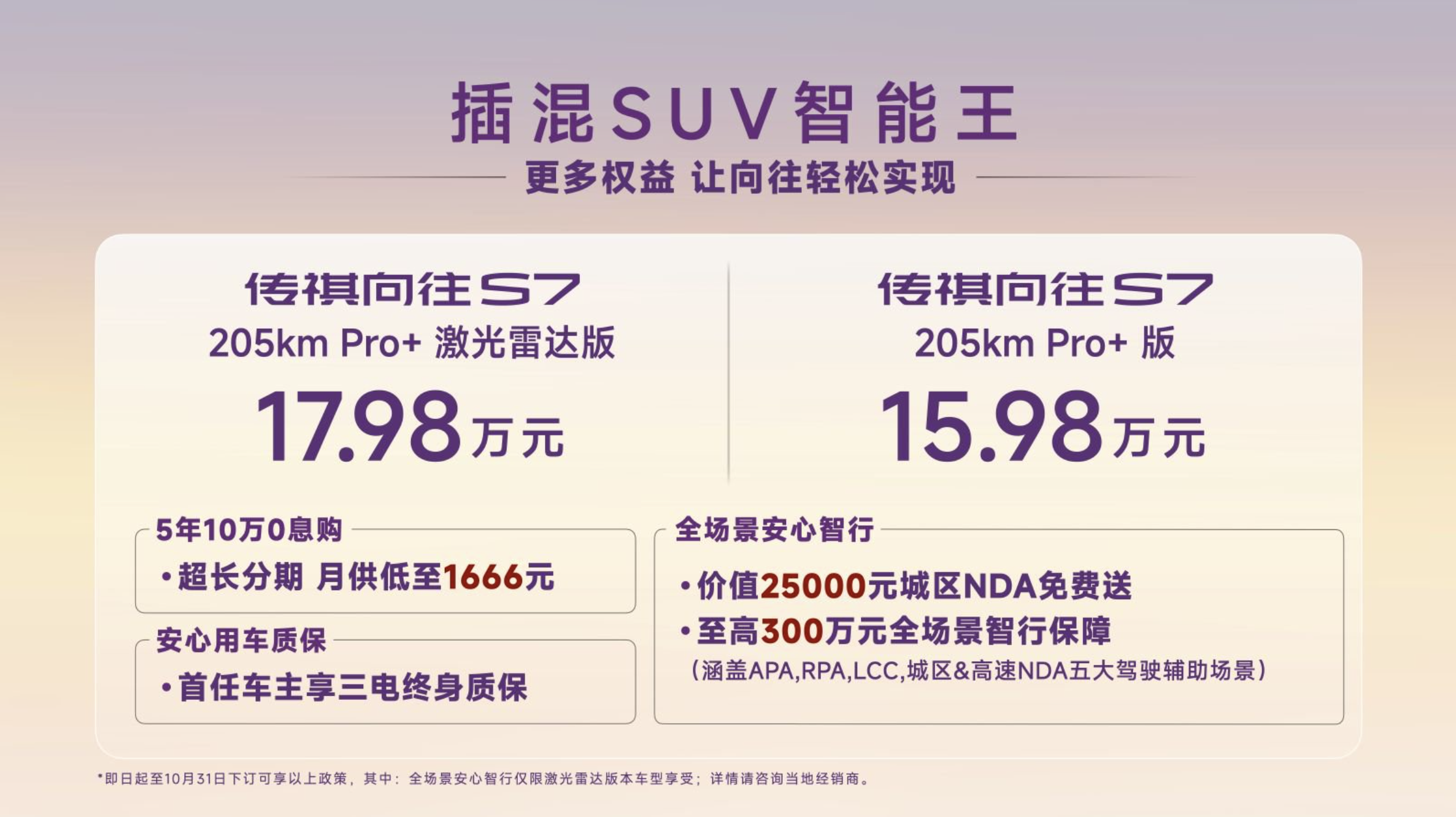 不得不说,作为向往系列的核心车型,此次上市的向往S7 Pro+系列,在延续其产品品质基础上,将舒适、智驾、安全等维度实现了再度升级,稳坐“20万级插混SUV智能天花板”宝座。
