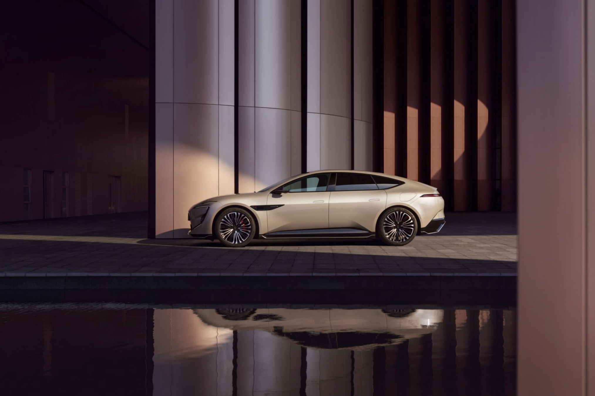 侧面采用了流畅且优雅的溜背造型,整体线条舒展,尽显高级感,黑色鲨鱼鳍、黑色包围以及大尺寸轮圈,则提升了整车视觉上的运动感。尺寸方面,新车长宽高分别为5020*1999*1460mm,轴距3020mm,修长且低趴,高级十足。