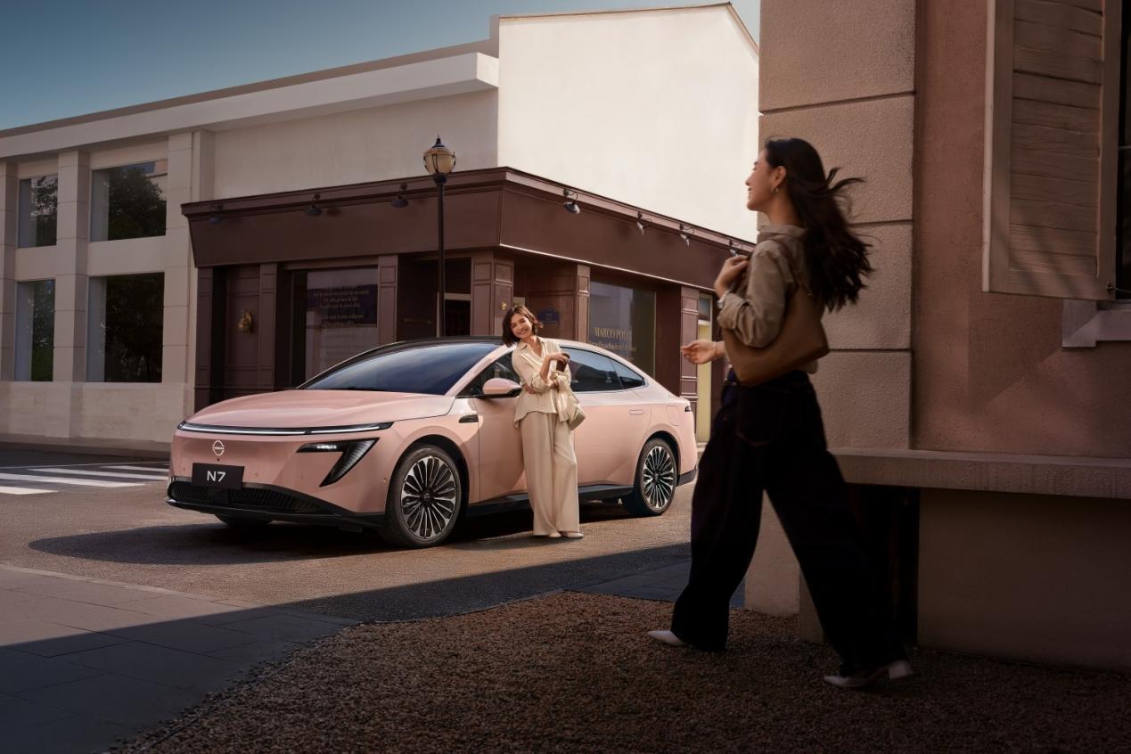 而这份用心在市场终端也得到了正向回馈,根据官方公布的数据显示,在2025年6月,东风日产N7单月零售销量达6189辆、7月达6455辆,堪称从合资纯电赛道刹车的一匹“黑马”。值得注意的是,东风日产N7的用户之中,年轻人占比达到了59%,女性车主占比达到了33%,此前上市,东风日产N7已经有数种内饰配色的基础上,又新增了玫瑰摩卡新内饰。