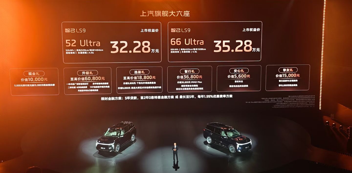 11月12日,汽车商评从上汽智己官方处了解到,旗下全新旗舰智己LS9正式上市。新车共推出2款配置,上市权益价分别为32.28万和35.28万。