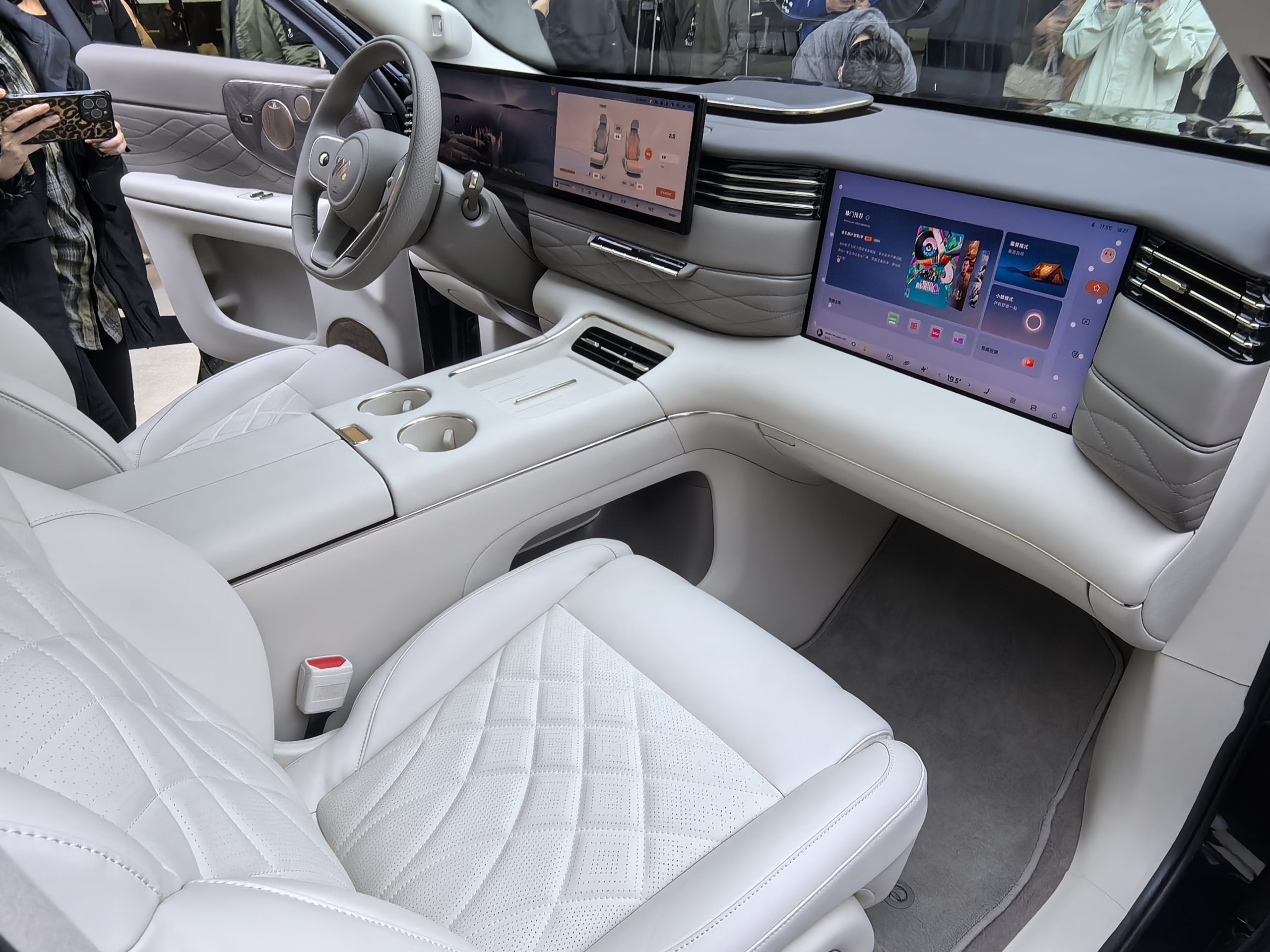 进入车内,整个座舱采用了前中后三层式分布,27.1英寸贯穿式仪表、15.6英寸副驾娱乐屏、贯穿式出风口、实体按键等错落有致。同时,还有支持零下6度到零上50度温度范围的冷暖箱,后排21.5英寸4k娱乐屏,全球首搭4D机械按摩座椅,B&O音响系统等,给你满满的奢享体验。