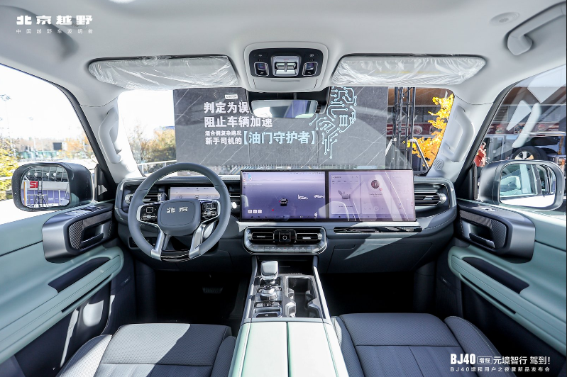 驾驶辅助方面,是北京越野BJ40增程元境智行的升级重点,作为全国首个搭载纯视觉技术方案的越野车型,其车身上26个高精度传感器,就是它的“感知神经网”——11个高清摄像头,3个毫米波雷达,12个超声波雷达,三者协同,确保看的更全,更精准,安全性自然也更出色。