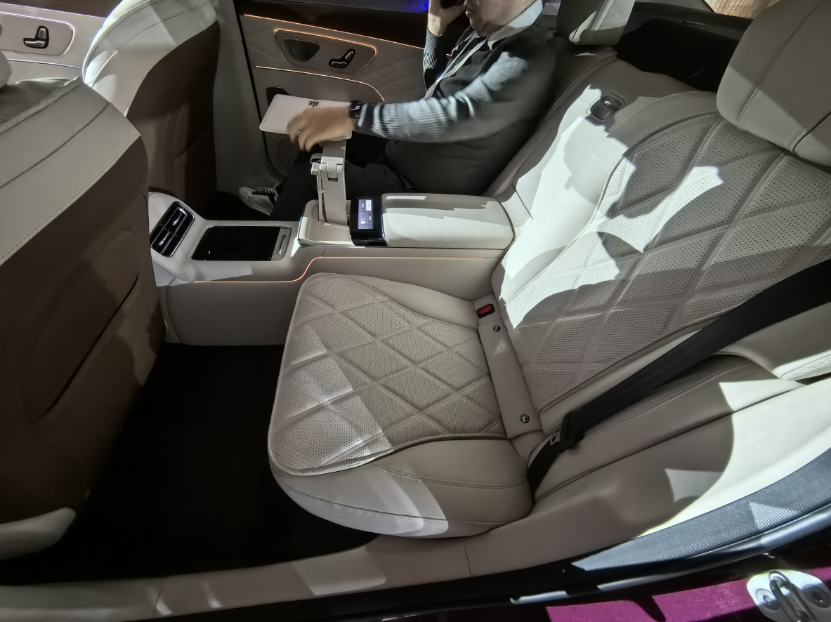 当然,新车的重点是二排,它提供同级唯一行政四座,二排豪华座椅采用迈巴赫同款双绗缝工艺,支持24.5°-32°电动调节,配备加热、通风与按摩功能,501mm奢阔腿部空间配合一键休憩模式。
