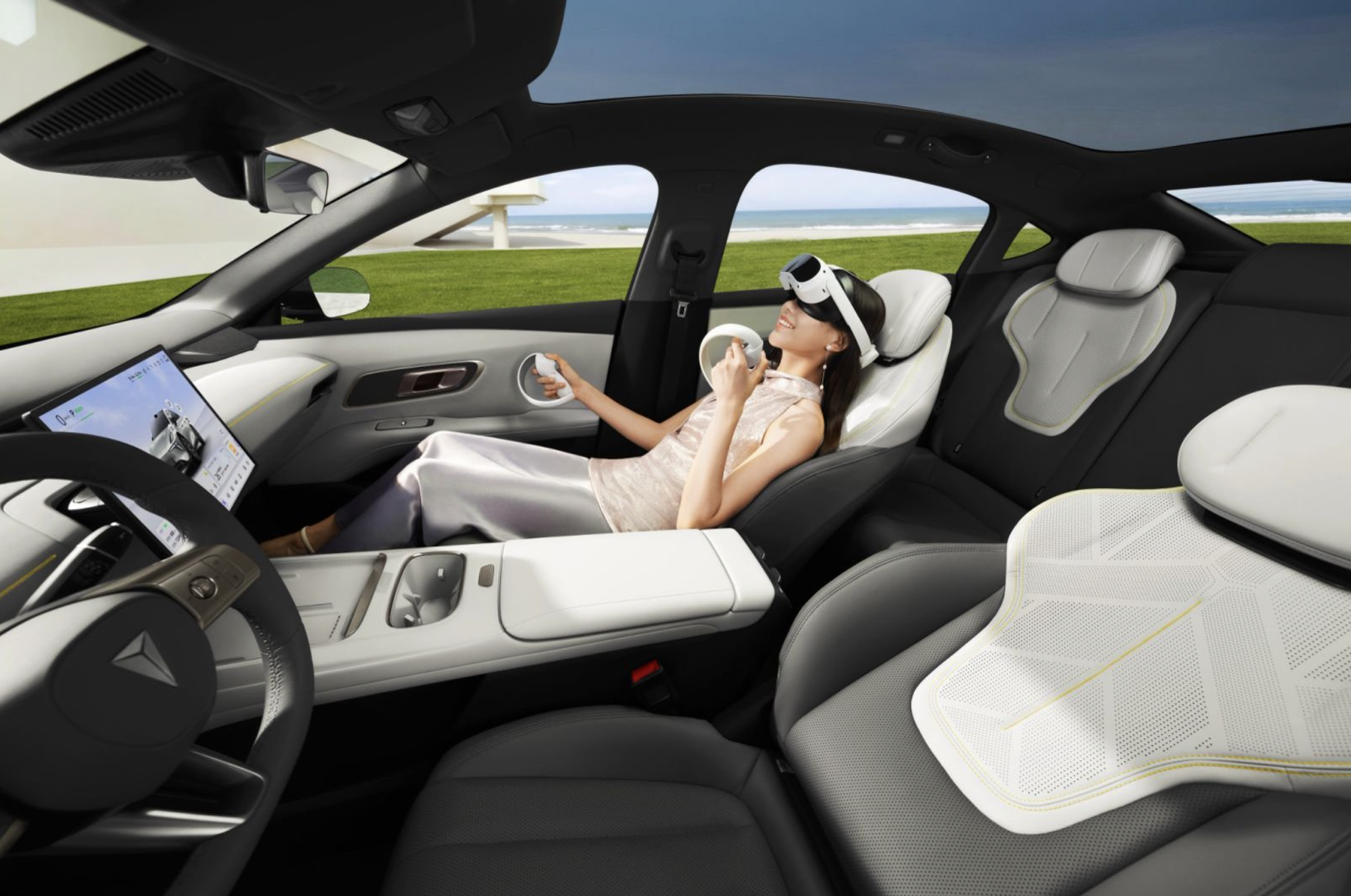 而在乘坐舒适性方面,深蓝L06前排座椅全系标配通风/加热,副驾采用零重力座椅,支持8点式按摩功能,同时车顶配备全景防晒天幕,夏天也能无压力享受日光浴。