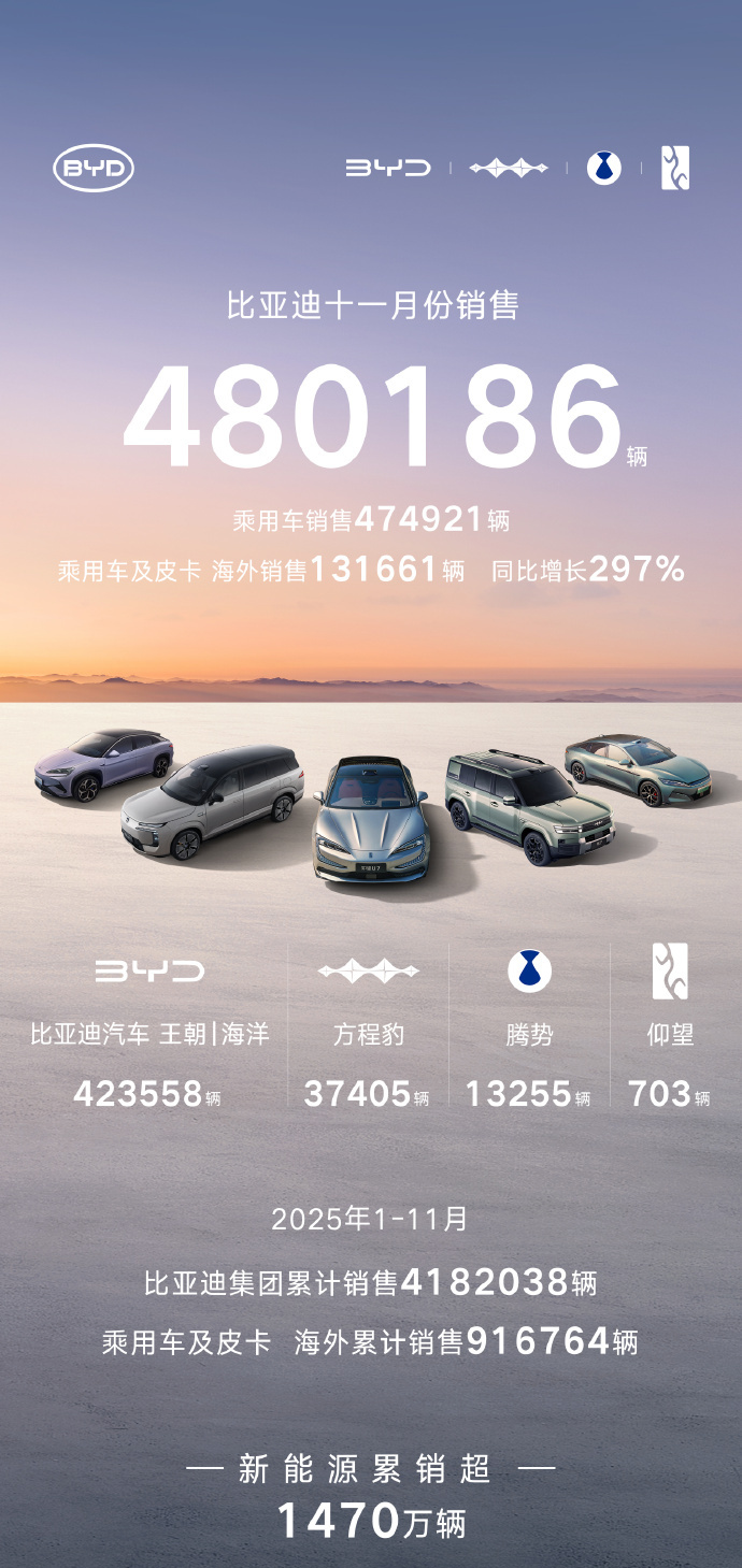 比亚迪11月销量的惊人之处不仅在于数字本身,更在于其背后展现出的均衡性和结构性优势。从品牌矩阵到产品布局,比亚迪已经构建起一个难以撼动的生态系统。这套“生态系统”,可以说是比亚迪持续发展的最好证明。