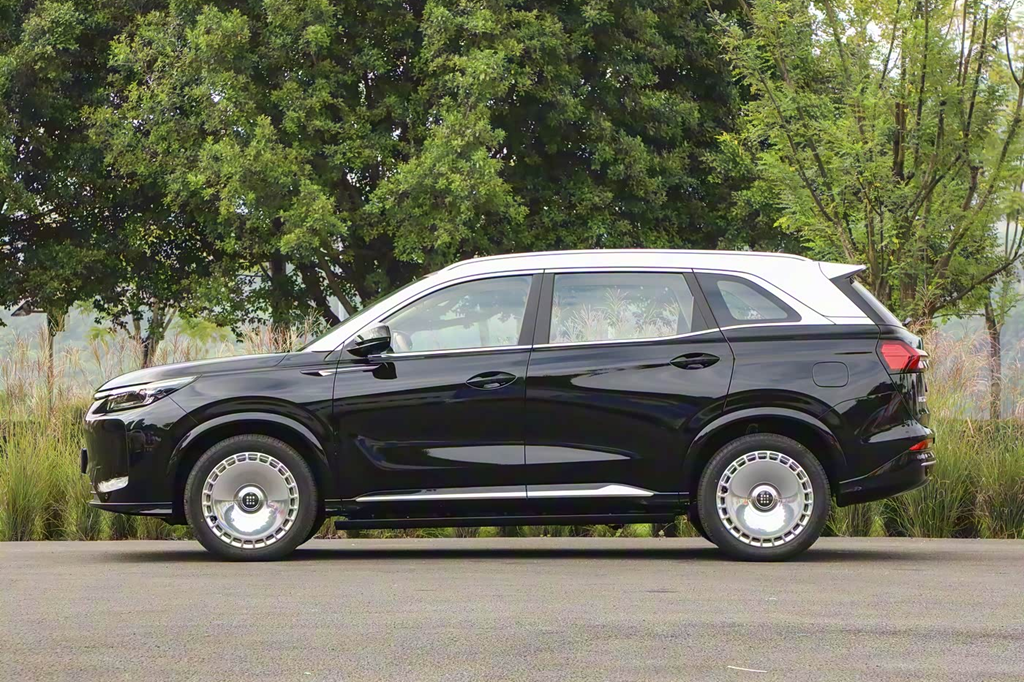 来到侧面,此次上新的两款车型在原有设计风格的基础上,升级黑银双色和灰银双色两种双拼方案,而且搭配铝合金大饼轮毂,颇有一些高端旗舰车型的气质。这样的设计优化,也满足了消费者对于个性化与豪华气场的追求。