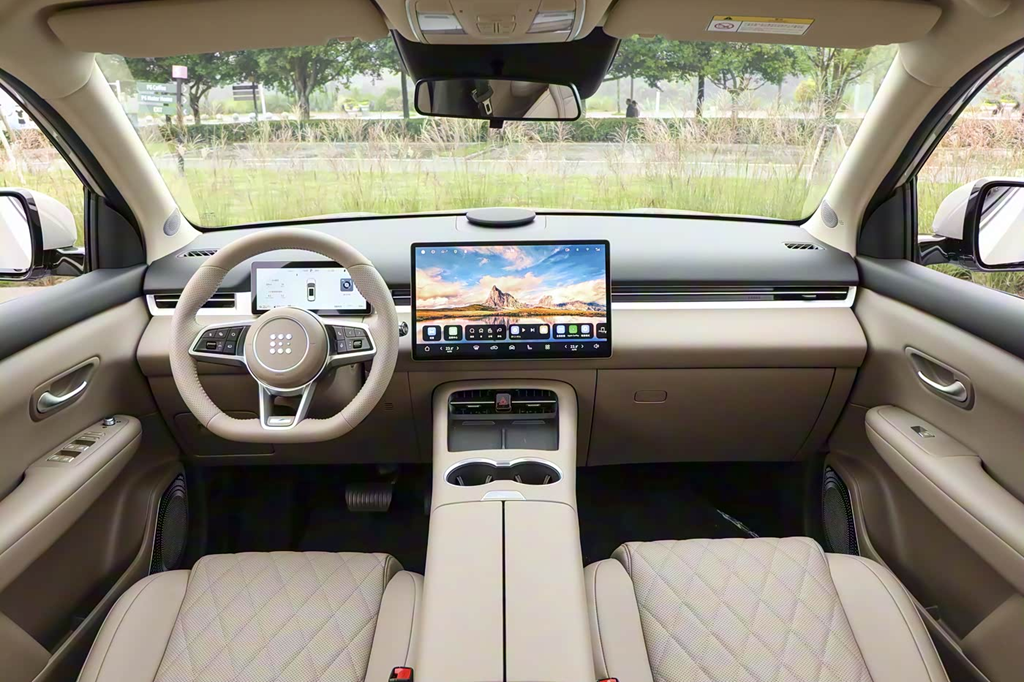 来到车内,第三代蓝电E5 PLUS此次推出的两款新车,也是以舒适性和实用性作为主基调。在前排,新车采用15.6英寸中控屏与8.8英寸液晶仪表盘进行组合,其屏幕设计与赛力斯旗下高端品牌类似。而且在功能性方面,新车的智能座舱也支持豆包AI大模型,交互体验更流畅。