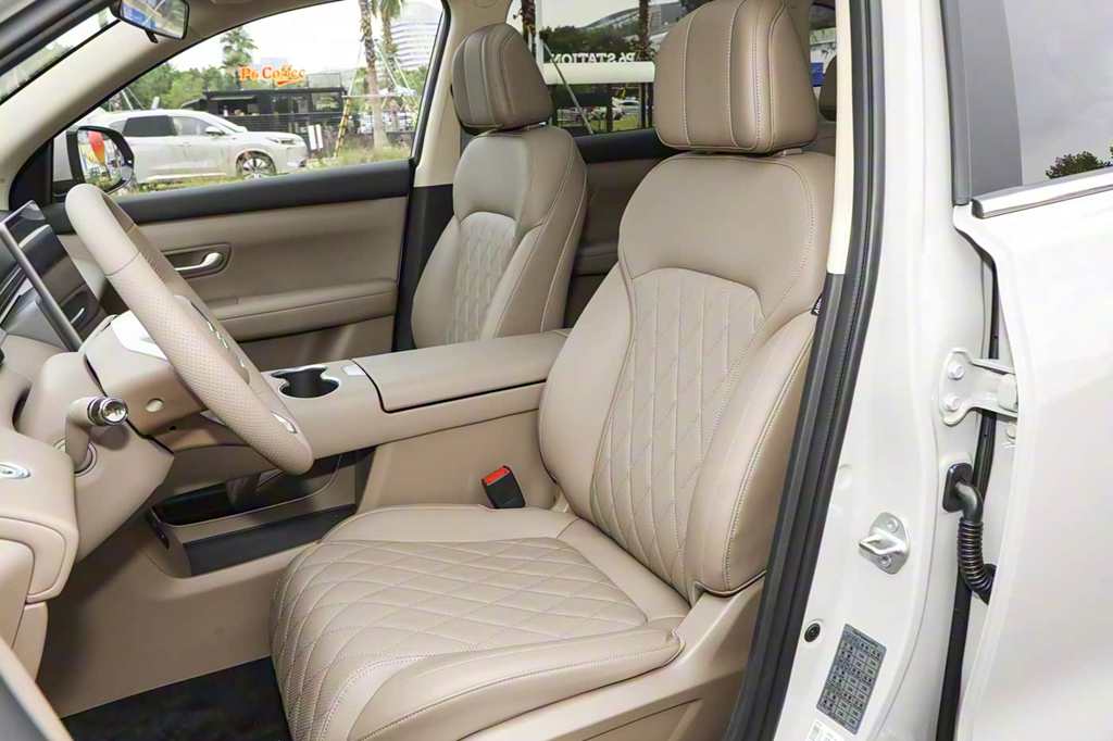 至于在内饰的细节设计上,第三代蓝电E5 PLUS则采用了更丰富的线条进行修饰。深浅搭配的内饰色调,再加上座椅表面的打孔菱形格纹皮革面料,让舒适性与豪华感得到提升。