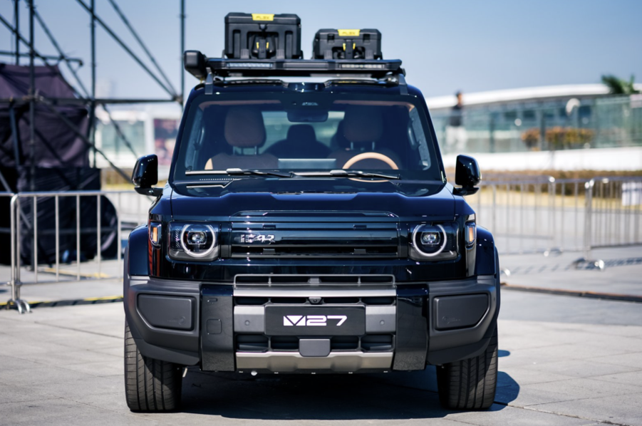 外观上,V27沿用了“未来经典”设计理念,更大尺寸的车身定位,让整车的方盒子力量感得到进一步放大。此外在设计细节上,V27还有接近1:1的黄金宽高比、细腻的Scoop切面与首创的“星际舷窗”双天幕,给人一种复古穿越车独有的特质。