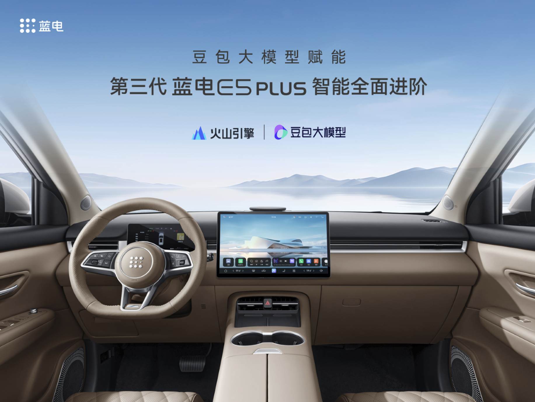 进入车内,第三代蓝电E5 PLUS采用了新能源车惯用的T字形布局,简约但实用。中控台搭载15.6英寸悬浮式中控屏+液晶仪表盘,还有怀挡,视觉上还是比较高级。车机内置豆包大模型,依托火山引擎的大模型能力与云端数据支持,可以实现更智慧交互体验。