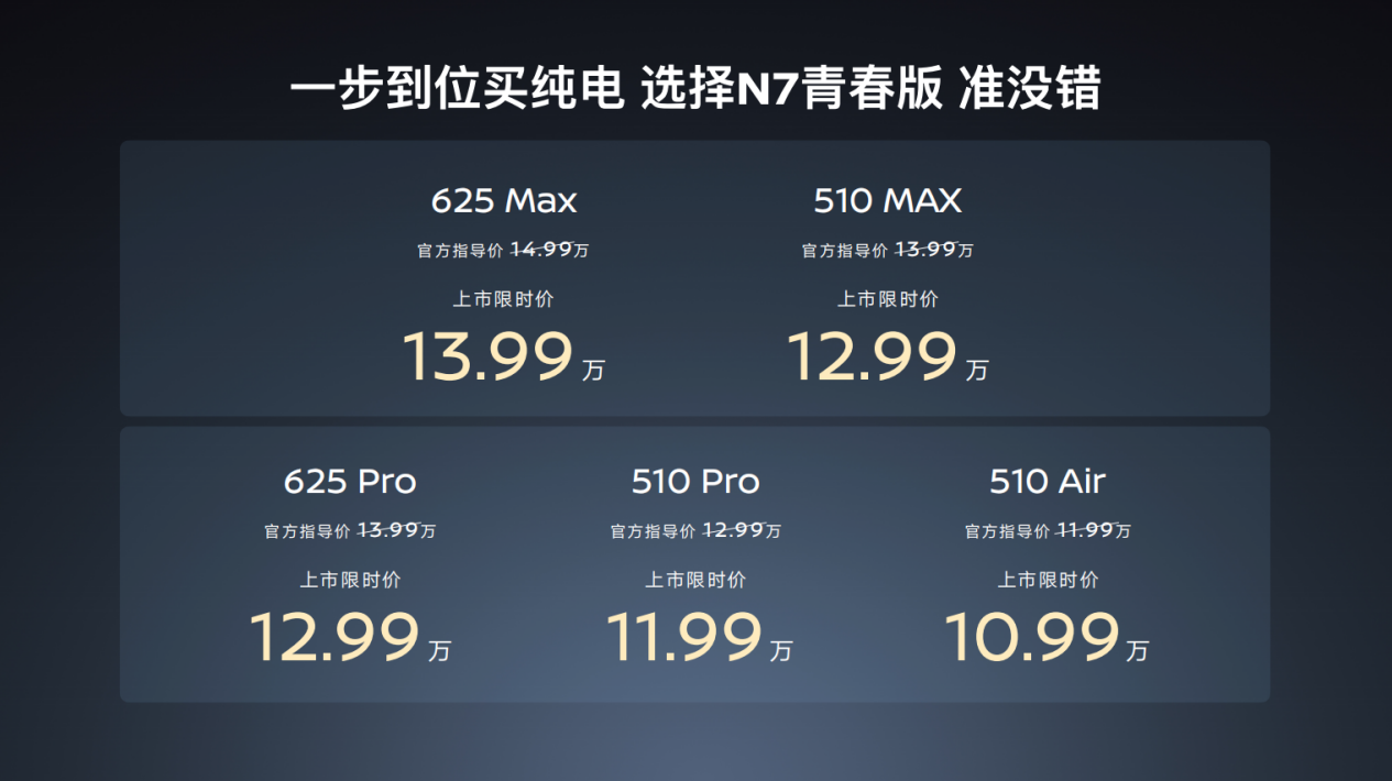 为了让更多家庭,轻松拥有这款越级品质的纯电轿车,N7青春版焕新而来。