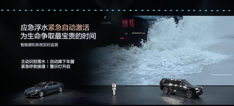 另外,这款车的高速爆胎稳行功能,实现了与天神之眼辅助驾驶系统完成了深度融合,新的NOA爆胎稳行稳停功能,可以实现车辆在NOA过程中遇到爆胎后自动保持稳定线路并稳定靠边停车。而车辆的应急浮水功能,也从手动开启升级为自动开启。