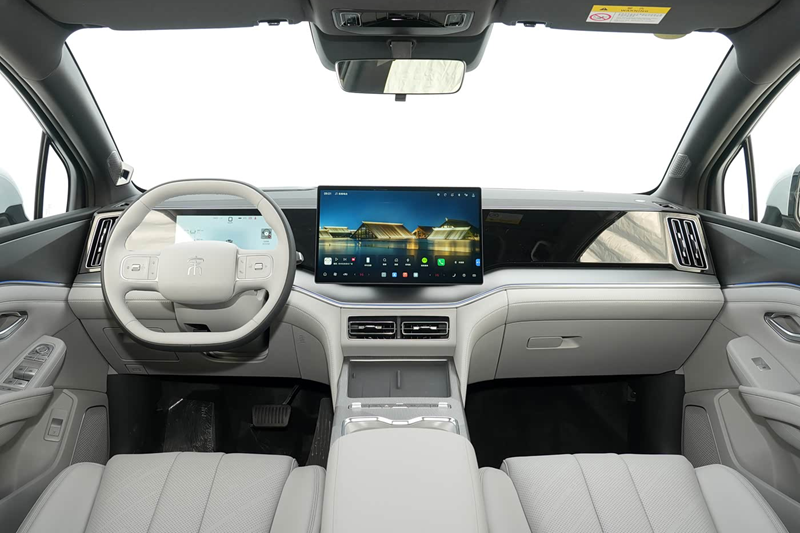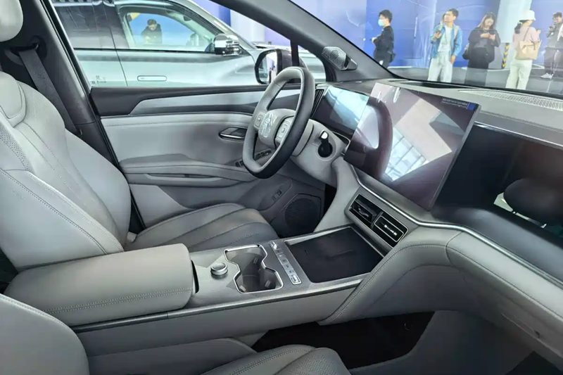 进入到车内,宋Ultra EV仍然沿用了比亚迪王朝系那一套成熟的设计语言,环抱式中控台配合钢琴烤漆饰板、旋转中控大屏等元素,展现出我们非常熟悉的样子。但是在车机系统方面,新车搭载的DiLink 6.0车机,增加了魔方传声筒等新功能。