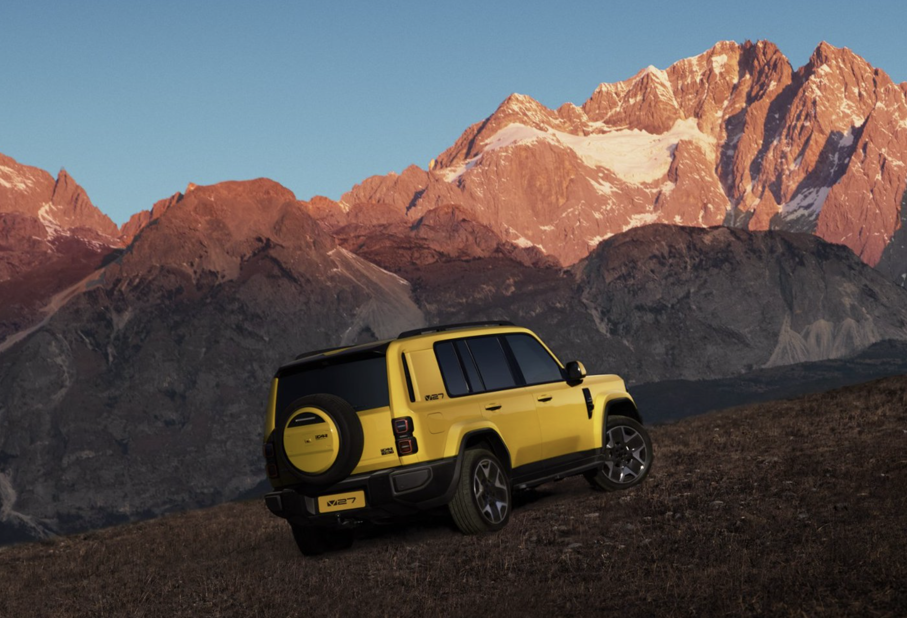 尾部采用了D柱盲窗设计,搭配竖直尾灯、侧开门、外露备胎等,看着颇有经典越野味道。基础参数方面,新车拥有24.5°接近角/离去角、220mm最小离地间隙、最大涉水深度600mm。