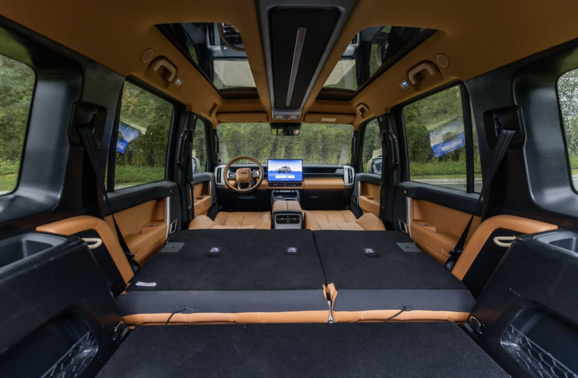 同级首创的“星际舷窗”双天幕,采用夹层玻璃,紫外线隔绝率高达99.9%,既能享受阳光与星空,又保护了家人。天空岛顶棚集成氛围灯和拓展功能,美观实用。