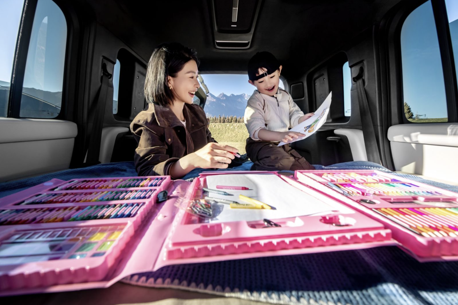 听觉上,新车搭载了“爱乐之声”23扬声器7.1.4全景声音响系统,硬件规格看齐40万级高端车型。并且它不是简单的“喇叭堆砌”,而是具备天空声道的专业声学设计,通过专业的声学调校布局,力求实现真正的环绕沉浸感。想象一下,一家人在远途旅行中,用这套音响系统播放音乐或电影,所能获得的愉悦感,远非几块大屏可比。它满足的不是功能有无,而是品质感和氛围感的精神需求。